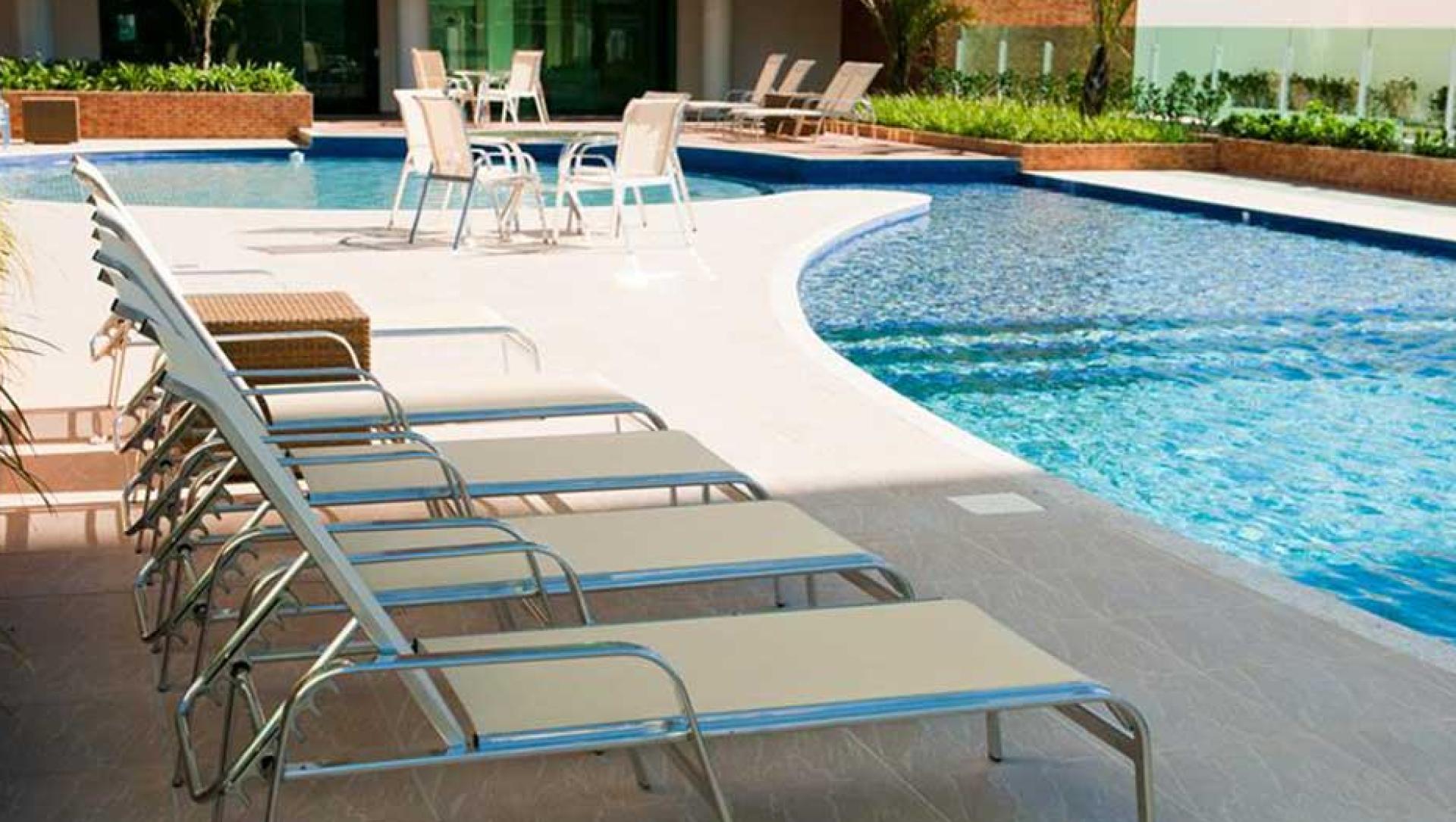 Piscinas externas adulto com raia e infantil;