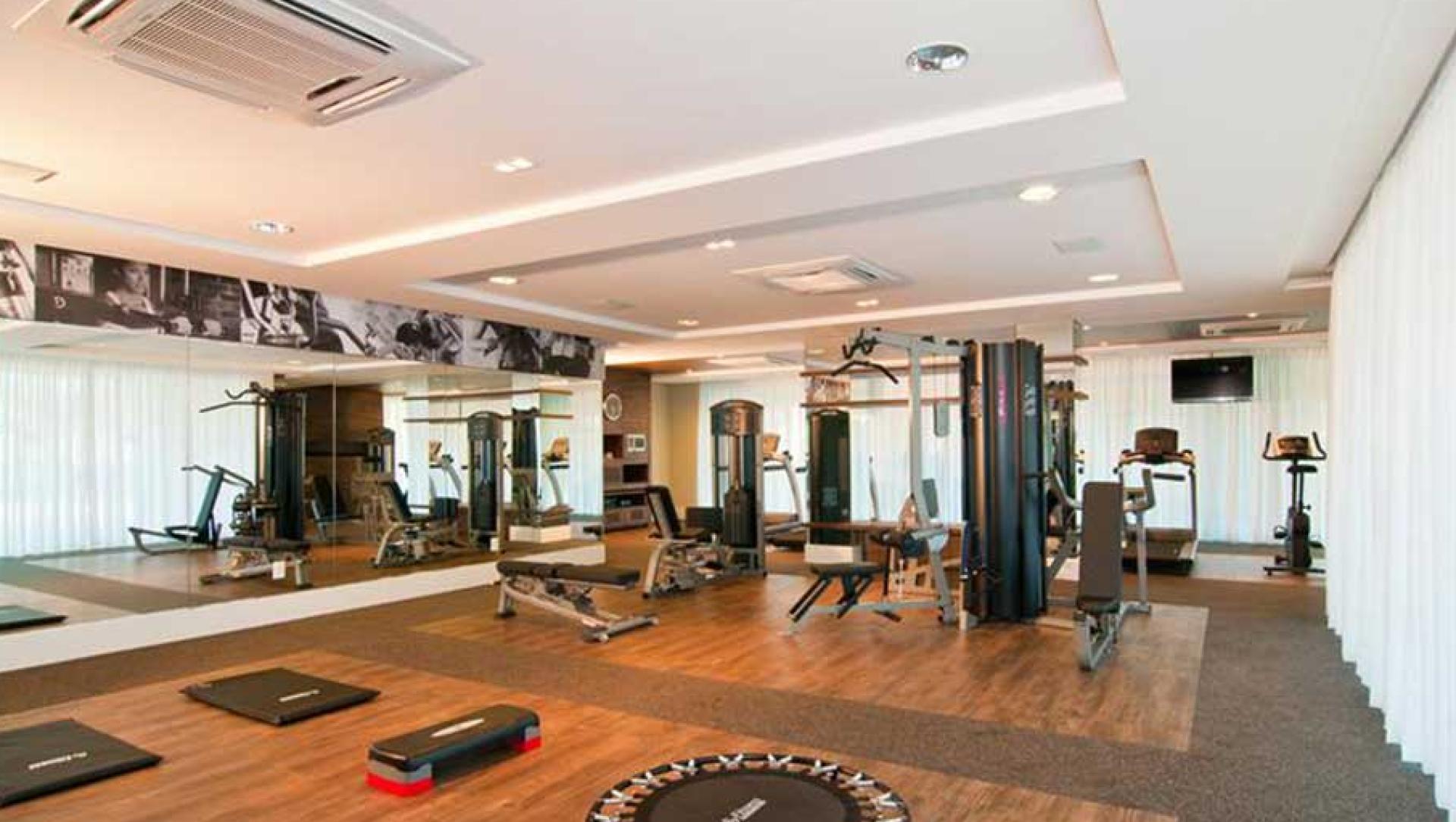 Academia com equipamentos Life Fitness;
